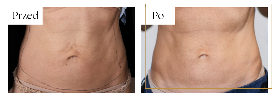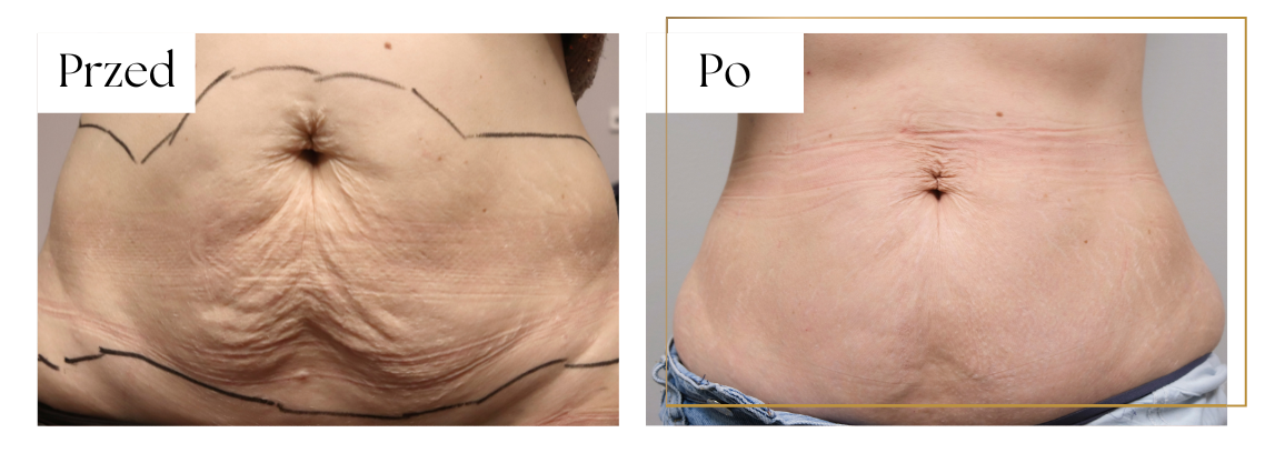RF mikroigłowa - termicznie głęboko i mocno ujędrnia skórę brzucha.